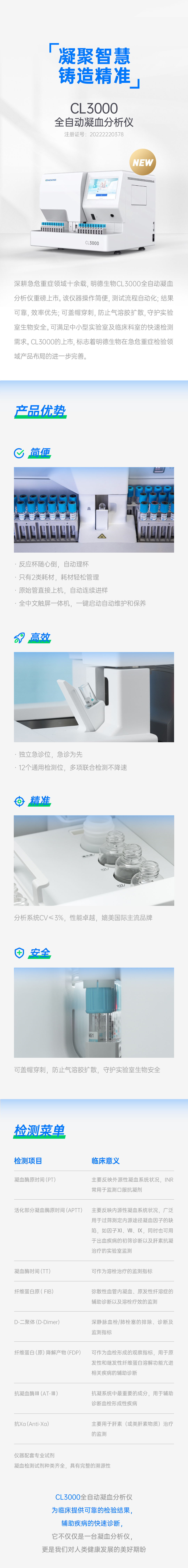 新品速遞 | 明德生物急危重癥診斷家族新成員CL3000全自動凝血分析儀