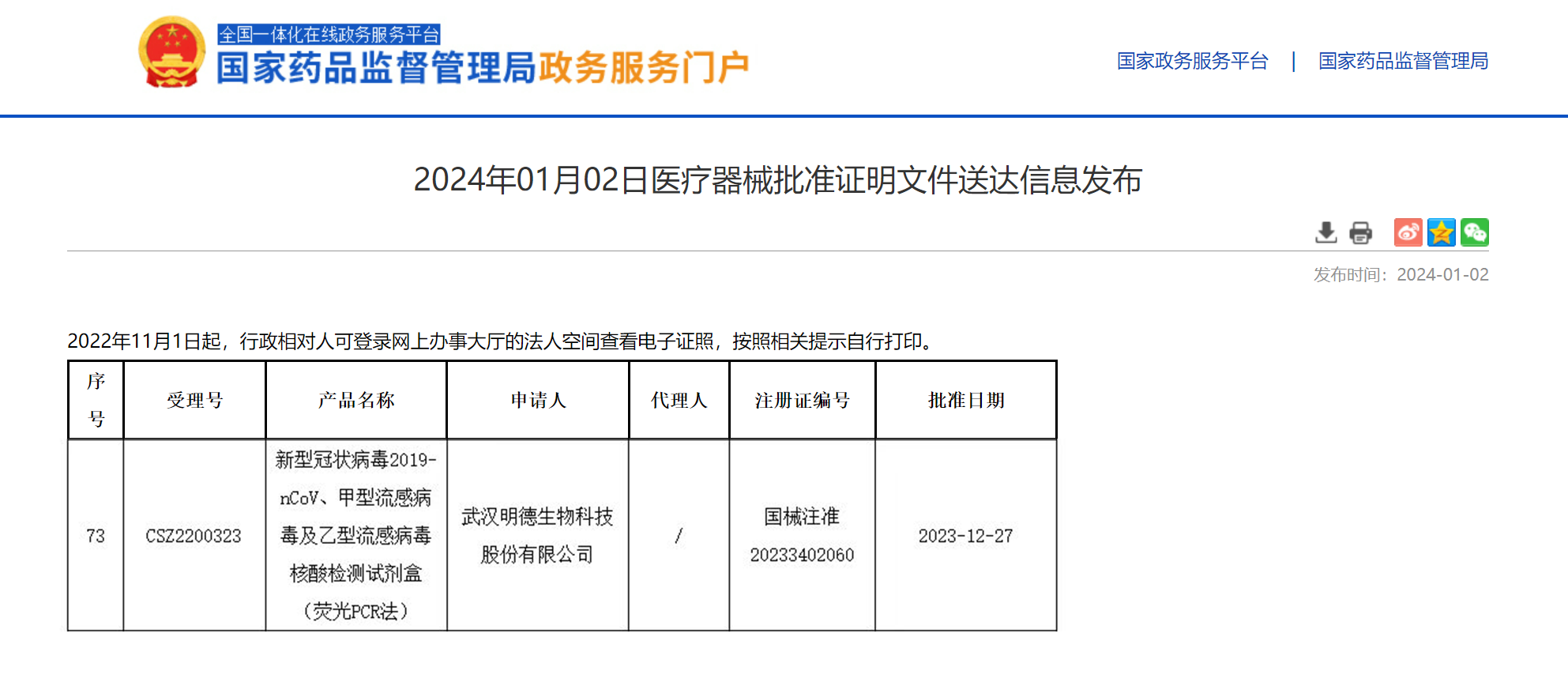 2024新年伊始,武漢明德生物科技股份有限公司自主研發(fā)生產(chǎn)的“