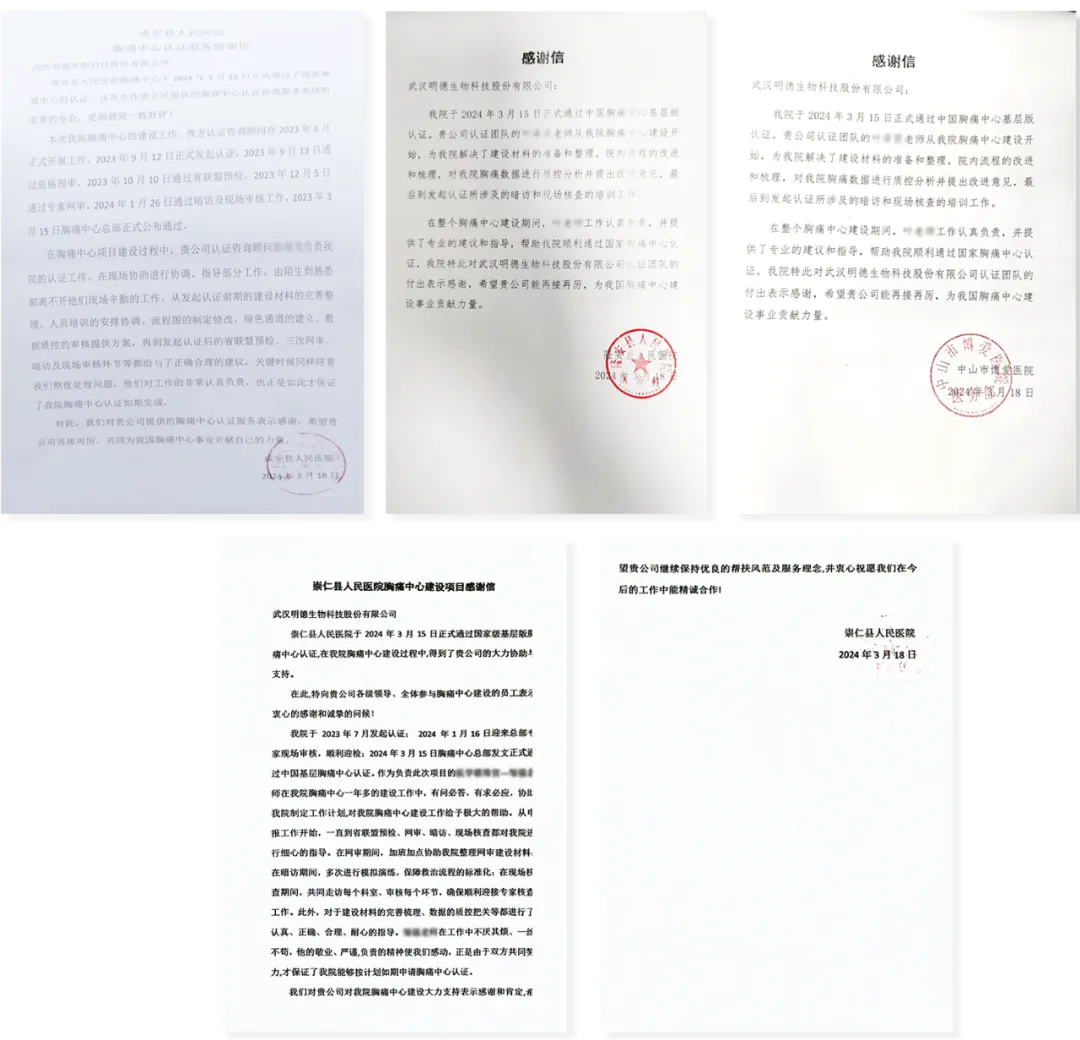 截止目前,明德生物在全國范圍內幫助建設的多個胸痛中心項目均已成功運行,具備100多家胸痛中心項目建設實踐經驗。明德生物認證咨詢團隊的專業服務,也得到了合作醫院的高度贊揚。