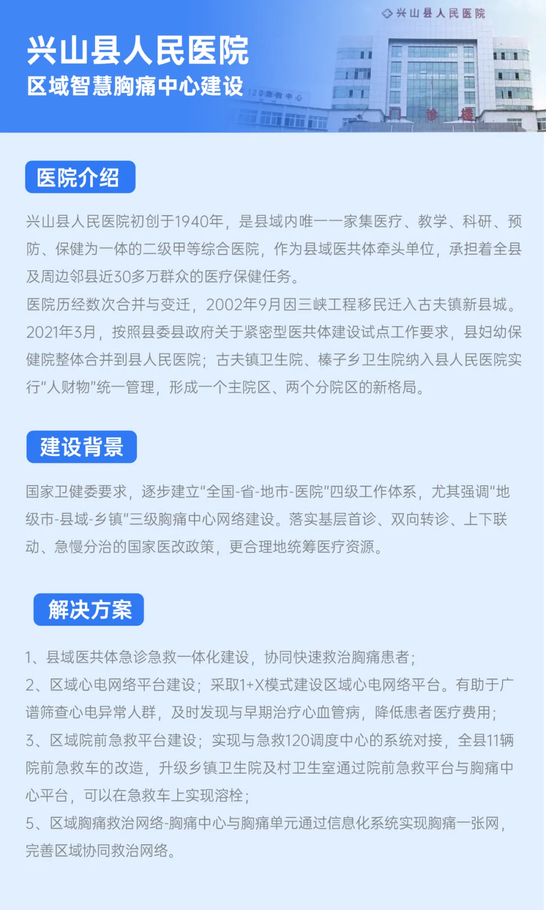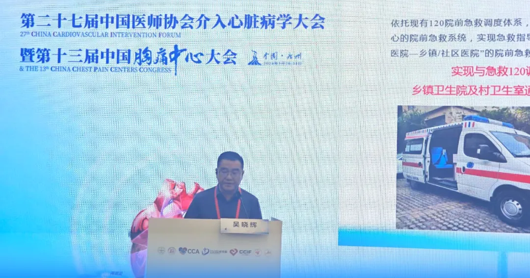 大會中,武漢大學中南醫院興山醫院吳曉輝院長進行了興山全域智慧胸痛中心解決方案的建設經驗分享。主要圍繞“實現信息共享和業務協同,建立實時質控體系,實現救護車和院內信息系統互聯互通和業務協同,提升急救轉運能力;建設生命體征信息傳輸系統,實現院內外信息無縫銜接,逐步健全覆蓋現代化急救保障體系。”