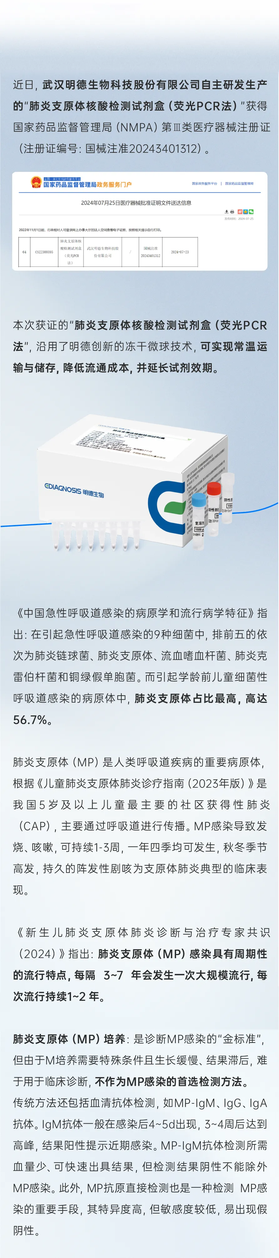 新品速遞|明德生物肺炎支原體核酸檢測試劑獲批上市!
