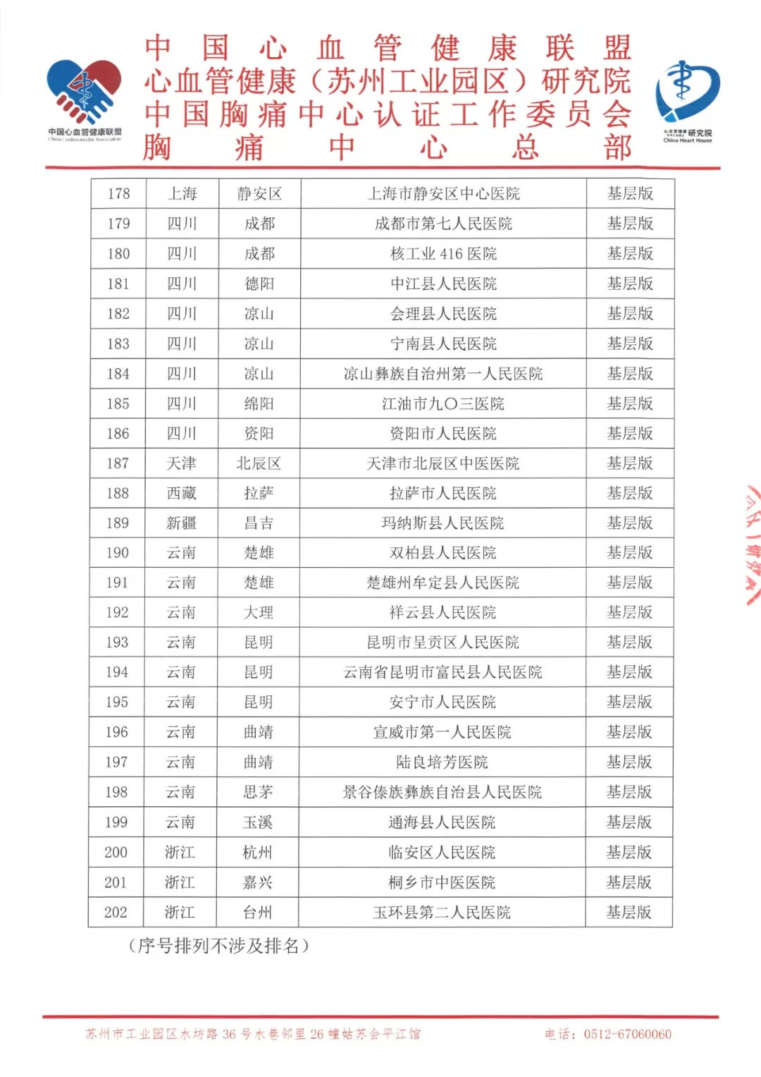 中國胸痛中心認證工作委員會和胸痛中心總部于2018年11月10日在胸痛中心總部官方網站以及胸痛中心總部微信公眾號上公布了“關于接受2019年度第一批次中國胸痛中心認證的申請通知”。截止到2018年12月2日22:00共接到246家胸痛中心的申請(不含廣東省),經過初步資格預審,現有202家胸痛中心符合參加本批次認證的基本資格,進入材料初審階段。其中74家符合標準版胸痛中心認證基本資質,128家符合基層版胸痛中心認證基本資質,現將名單公告如下: