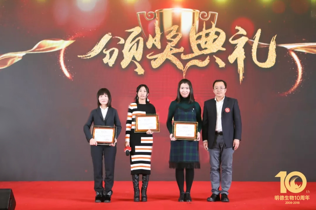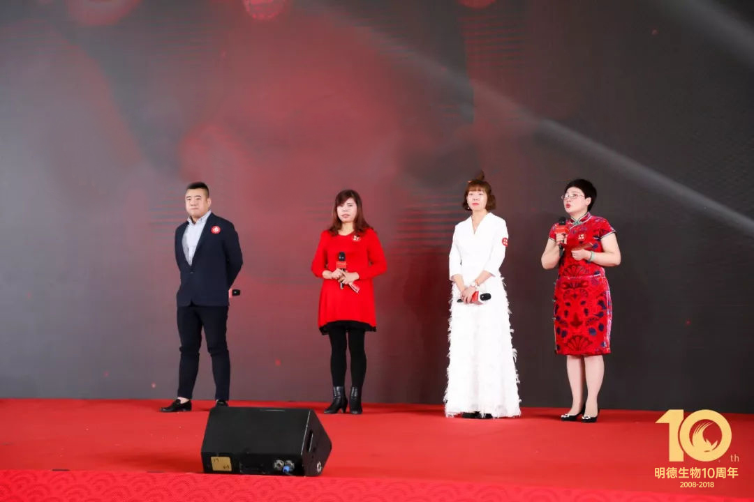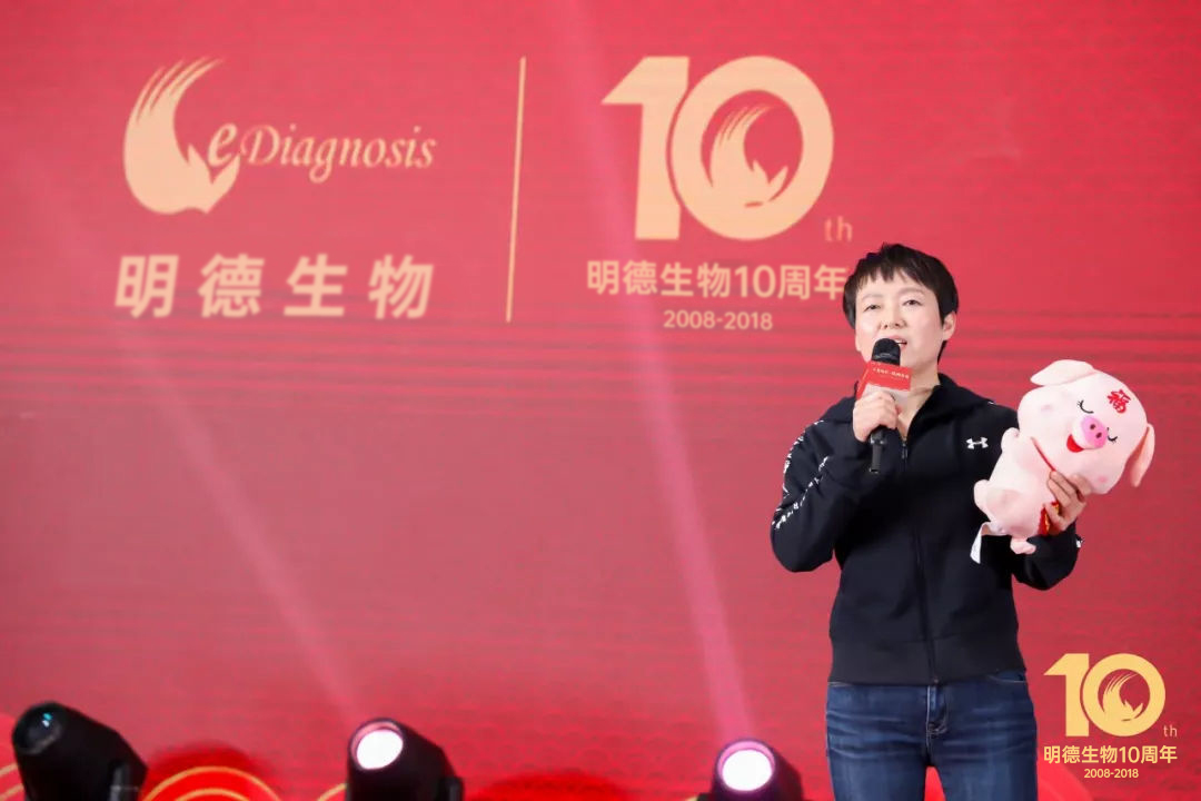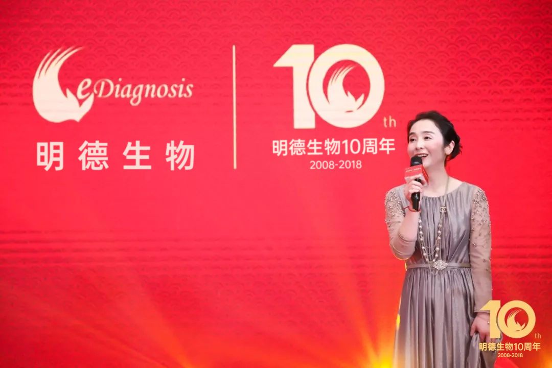 明德生物聯合創始人王穎博士上臺致辭,她為明德家人送出了親切的新年祝福,她滿懷激情地說:“從2008到2018,明德生物的變化可謂翻天地覆!”員工人數、銷售收入、人均薪酬、辦公面積、注冊證數量,每一項指數的增加都見證了明德的一路成長!