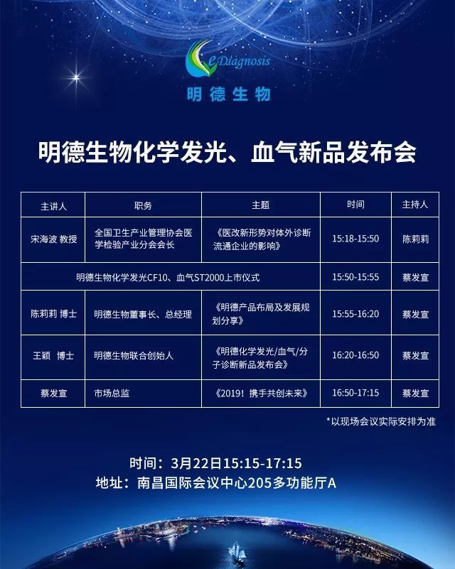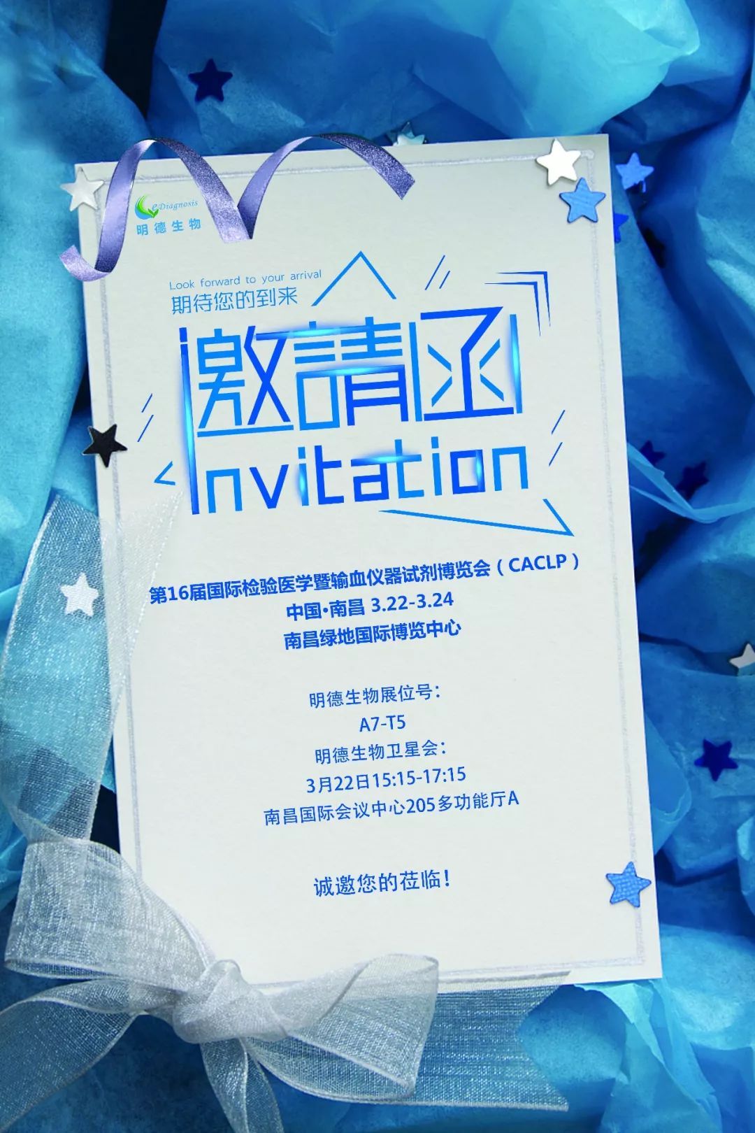 第16屆國際檢驗醫(yī)學(xué)暨輸血儀器試劑博覽會(CACLP)將于2019年3月22日-24日在南昌綠地國際博覽中心隆重舉行。明德生物將攜全系產(chǎn)品參與此次盛會,并召開新產(chǎn)品發(fā)布會,誠摯邀請各位專家、合作伙伴、行業(yè)朋友蒞臨。
