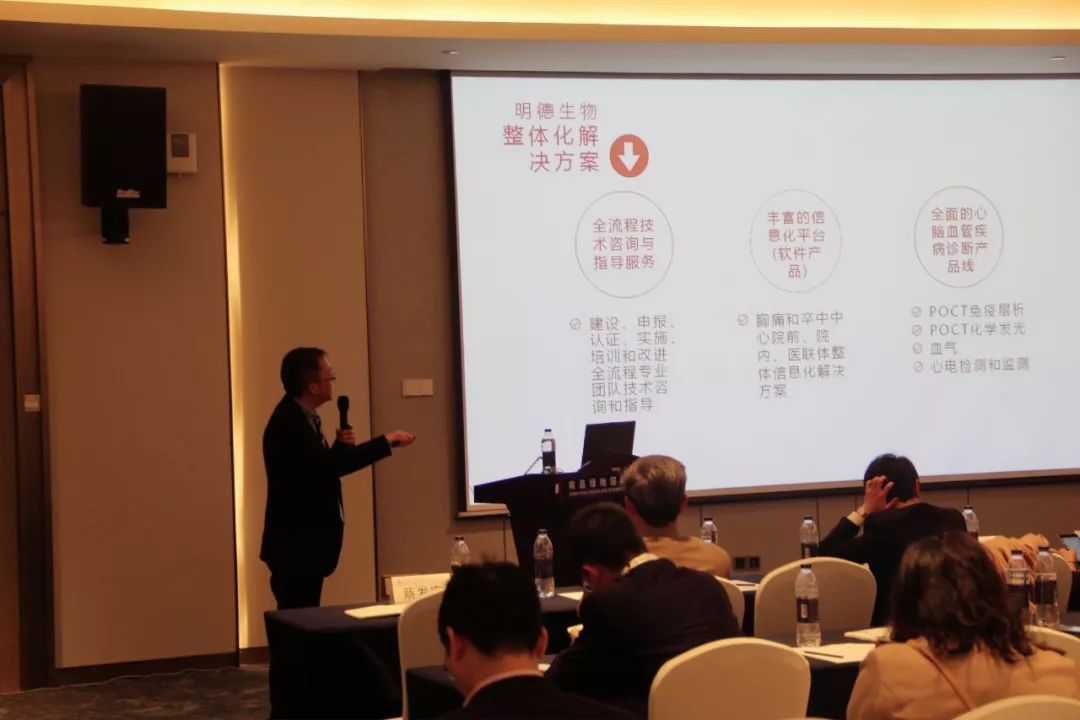 明德生物市場總監蔡發宣做了胸痛中心、卒中中心、心電網絡軟硬件一體化建設解決方案的演講,充分展示了明德生物在急危重癥醫療服務領域的實力和優勢。
