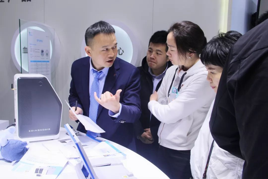 明德生物新產品吸引了眾多專業觀眾前來咨詢交流,化學發光、血氣、分子診斷、胸痛中心板塊的展臺前都聚集了大量用戶。展會攜帶的2000多份產品資料,全部被觀眾領完。明德人個個精神抖擻,耐心、細心解答客戶們的提問。