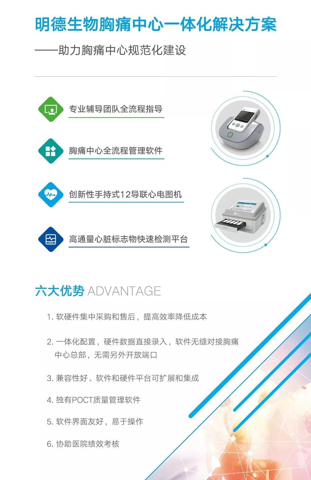 明德生物是國內首家提供胸痛中心從前期幫扶、方案設計、軟硬件產品一體化實施整體服務的IVD企業,開創了胸痛中心建設的“明德模式”。