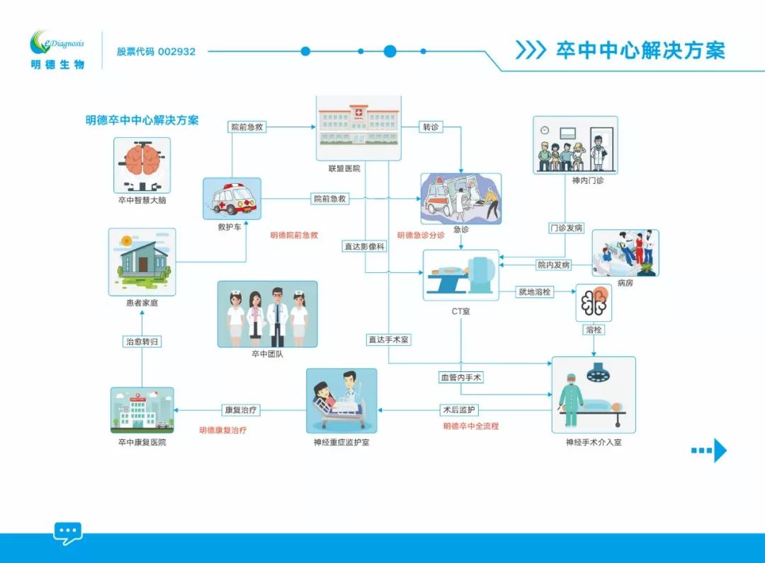 明德生物“卒中云橋”工程是明德生物急危重癥智能化救治體系建設的組成部分(同期還有胸痛中心、心電網絡等),依托物聯網、云計算、人工智能、大數據分析等關鍵技術,立足分級診療、雙向轉診、臨床路徑、綠色通道等惠民政策,解決危急重癥患者全流程防治質控管理的難題,打通一條從患者到?茍F隊的VIP救治通道,早發現、早治療、早康復,搭建出一座讓患者走向健康的生命之橋。