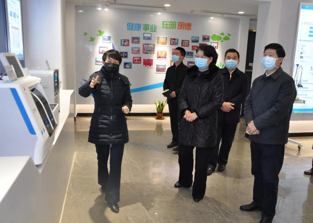肖菊華副省長一行在陳莉莉董事長的陪同下參觀了明德產品展示廳。陳莉莉博士向肖菊華副省長和各位領導匯報了POCT、化學發光、血氣分析、胸痛中心、分子診斷等項目的研發創新及科技攻關情況。肖菊華副省長仔細詢問了企業科技攻關特別是新冠肺炎快速檢測試劑的研發、產品應用場景、面臨的困難等情況,對明德生物在抗擊新冠肺炎疫情期間科技攻關工作做出的努力和成果表示充分的肯定。