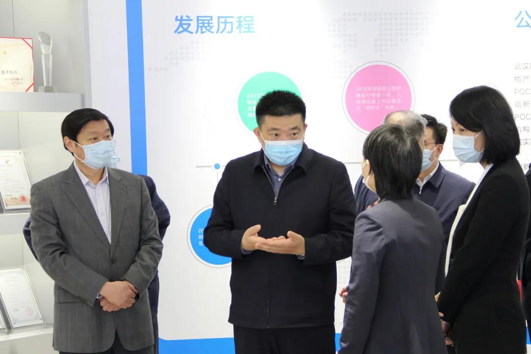 4月9日,武漢市委副書記、市長周先旺調(diào)研明德生物,了解新冠抗疫產(chǎn)品應(yīng)用情況、企業(yè)復(fù)工復(fù)產(chǎn)情況。明德生物董事長陳莉莉博士、明德生物聯(lián)合創(chuàng)始人王穎博士全程接待。