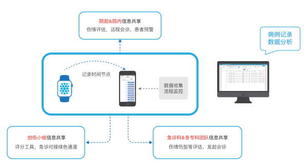 通過智能120急救車載系統、院內創傷急救系統、遠程會診管理系統以及數據平臺組成,在患者發病救治過程中可以根據患者的病情癥狀、患者位置及距離,智能匹配治療醫院,提供院前急救診療服務,將院前急救與院內綠色通道實現無縫連接起來。