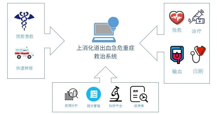 明德生物結合最新版中專家們的共識,打造上消化道出血急危重癥救治系統,用信息化技術為急診救治提供綠色通道,完善上消化道出血救治流程,同時減輕醫護文書工作量,最大限度節省救治時間,有效提高醫護人員搶救效率,為患者的生命保駕護航。