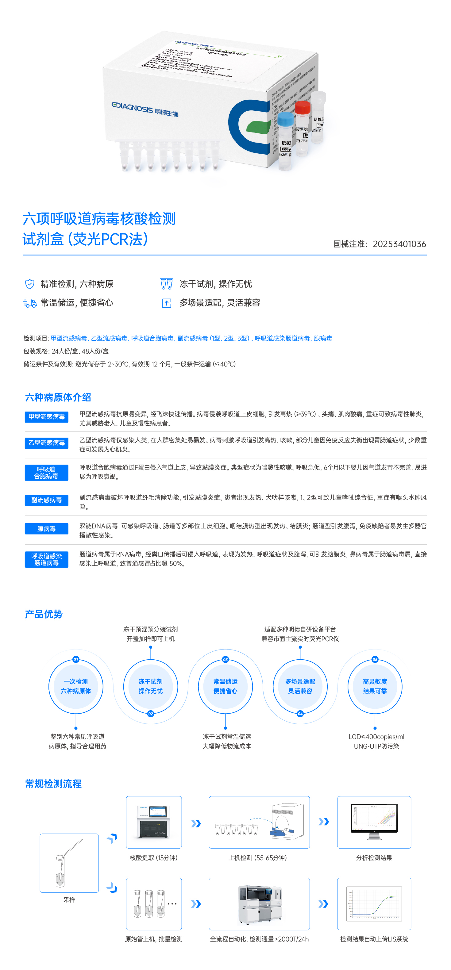 六項呼吸道病毒核酸檢測試劑盒(熒光 PCR 法)